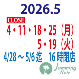 2026年4月25日 / 最終更新日時 : 2026年4月25日 sugar723 お知らせ 5月定休日のお知らせ 5月定休日のお知らせ 5月は毎週月曜日、5日、19日の火曜日が定休日です。5月6日までは16時までの時短営業とさせていただきます。